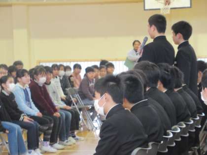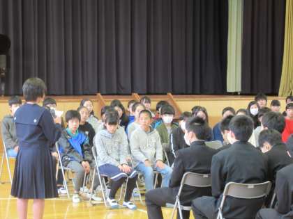 合唱する姿も、質問に答える姿も、6年生の歌を講評してくれる姿も、とても大人に見えた中学校3年生。6年生の子どもたちも、3年後にはこんなふうに成長しているのだろうと、感慨深く思いました。