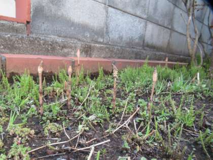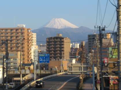 富士山が美しく見えます。歩道橋の下には、つくしがたくさん顔を出しています。