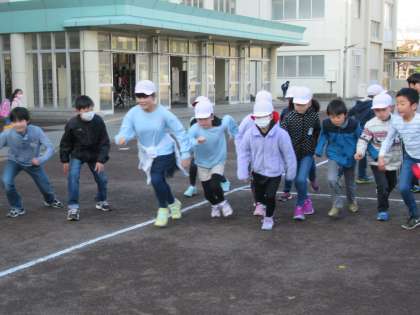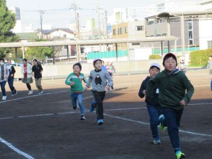 3年生の朝といえば、「おはトレ」。この1年間、毎朝校庭に出て、運動をしてきました。今朝も、上級生を巻き込んで、タイムトライアルをしていました。