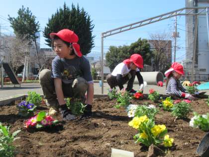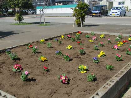 学年の花壇に、春の花を植えました。新しい1年生を迎える準備が進んでいます。