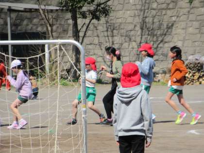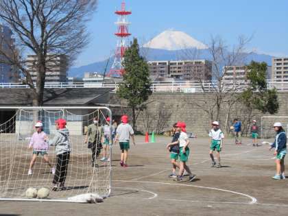 気持ちよく晴れ渡った青空の下で、体育の授業をしています。