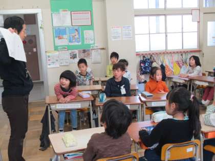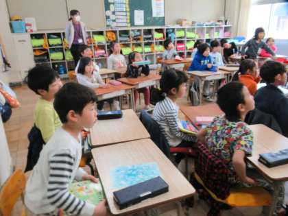 担任の先生がお留守なので、初めて教えていただく先生と授業をします。がんばってね!