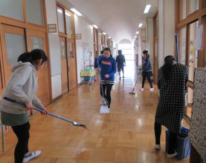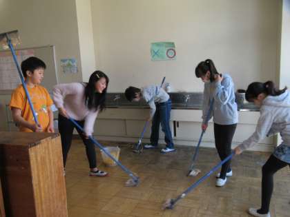 卒業間近の6年生が、6年間の小学校生活への感謝を込めて、奉仕作業をしてくれました。教室や廊下のワックスがけも、手分けして行いました。