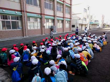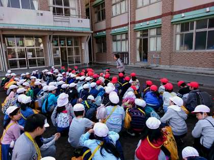 これまで学んできた「総合的な学習の時間」のまとめとして、狩野川へ出かけます。先生方から注意事項を聞いてから出発です。