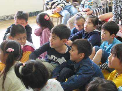 先生が読み聞かせをしてくれました。楽しい感想が、たくさん出てきました。
