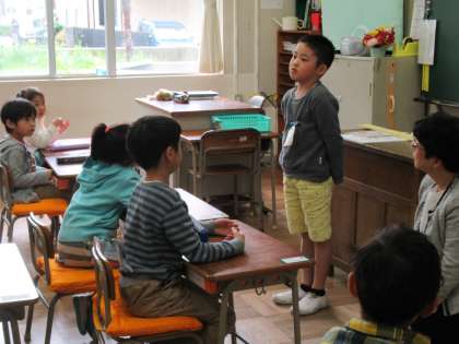 ちょっと恥ずかしいけれど、勇気を出して自己紹介をしました。お友だちが拍手をしてくれました。