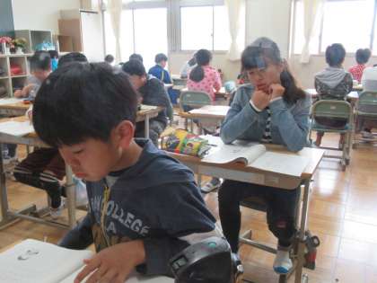 このクラスは、ドアが閉まっていたので窓ガラスごしに撮影しました。