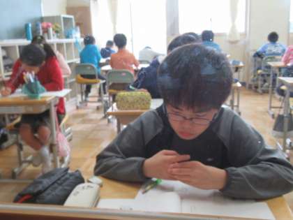 本日は、全国一斉に、小学校6年生と中学校3年生の学力学習状況調査が実施されています。本校でも、国語の調査から開始しています。