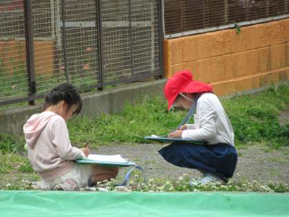 春を探しに、校庭へ出ました。どんな春を見つけてくるのかな。