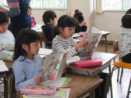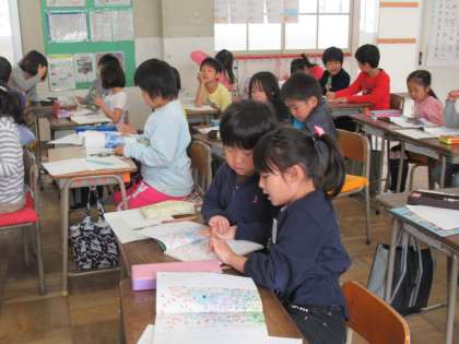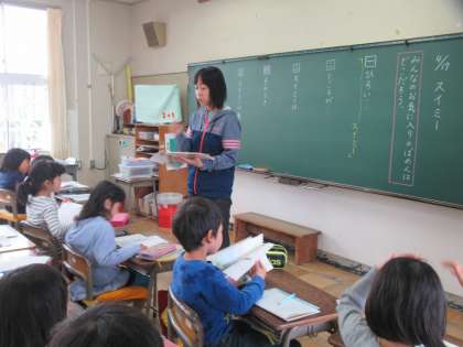「スイミー」のお話を読んでいます。今日は、場面ごとにタイトルをつけました。