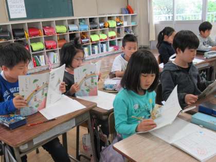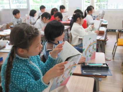 「スイミー」を読んでいます。音読が上手になってきました。