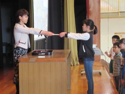計画委員長からは、四小をあいさつと思いやりのある言葉づかいのできる学校にしたいという、決意表明がされました。
