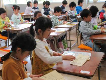 何種類も、プリントが配られました。「はい、どうぞ」「ありがとう」の遣り取りが、たくさん聞こえてきます。相手を思いやる心の表れでしょう。