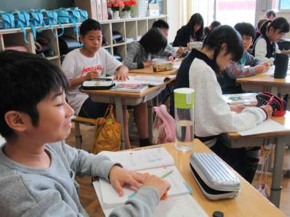 対称の学習をしています。理解だけでなく、正確に作図する力も求められます。