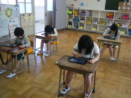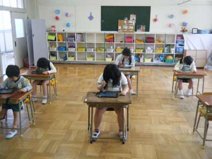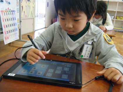 タブレットを使って、算数のお勉強をしました。とても熱中していて、楽しそうですね。