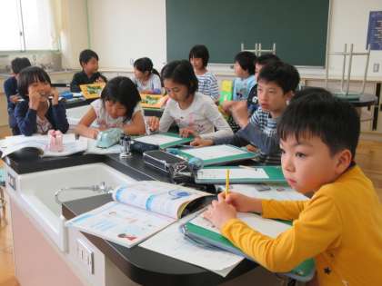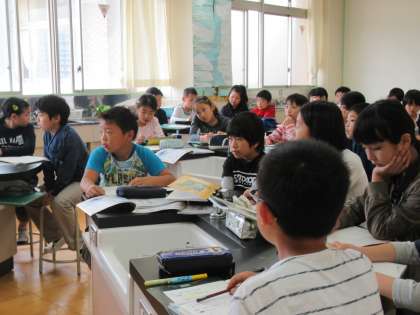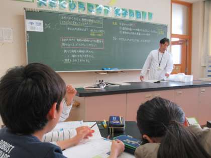 これから外へ観察に出ます。先生の話を、よく聴いていますね。