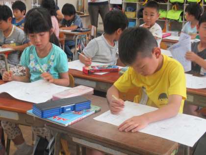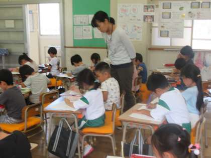 来週、1年2組の算数で、校内研修会を予定しています。今日は、その参考にと、3組の授業を1年生の先生方が参観しました。1,2組の子どもたちは、先生が用意してくれたプリントを、自分の力で進めました。支援の先生が各教室に配置されているので、安心です。