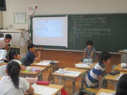 二けたを一けたで割る割り算を学習しています。やり方を覚えるだけでなく、その意味も確実にとらえられるよう、学習しています。