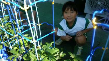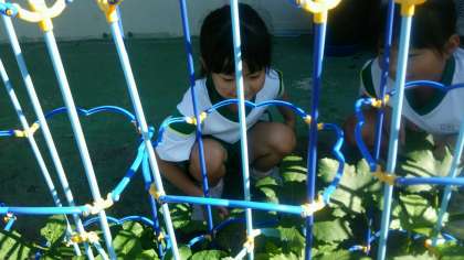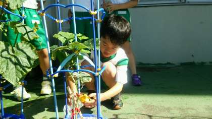 2年生が、野菜の世話をしています。もう、収穫した子もいます。