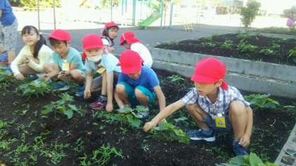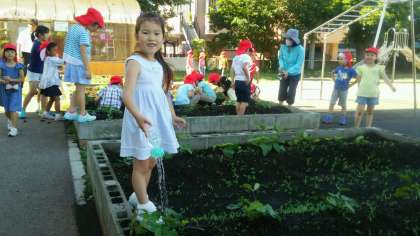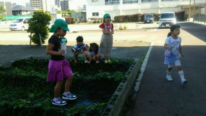 1年生はさつまいもの世話好をしています。水をあげたり草を取ったりして、美味しいおいもを育てます。