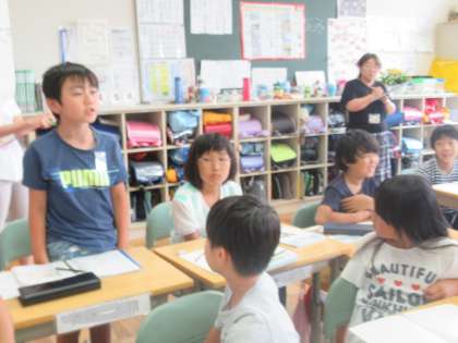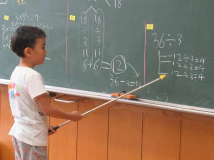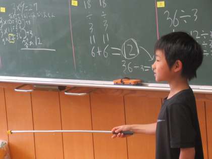 割り算の学習をしています。新採の先生なので、指導教員の先生方が参観し、授業後には助言をしてくれます。子どもたちとともに、先生も成長していきます。