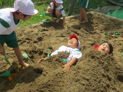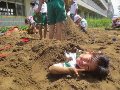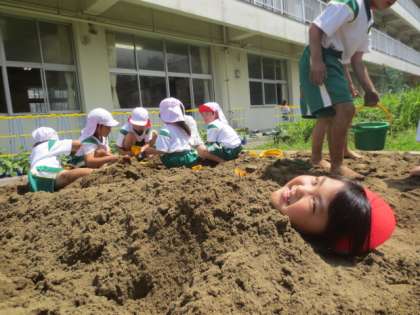 2組のブームは、土に埋まること。ひんやりとした土が気持ちがいいようです。