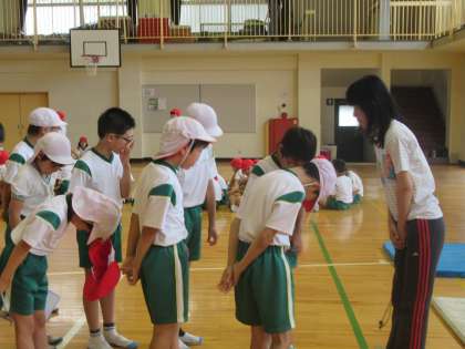 しっかりあいさつをして、測定をしてもらいます。礼儀も大切ににています。