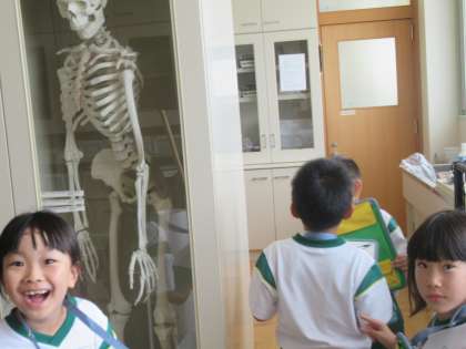 前回は2年生に案内をしてもらいましたが、今回は、1年生でけで探検しています。グループのお友だちといっしょに、どきどきわくわく探検中です。