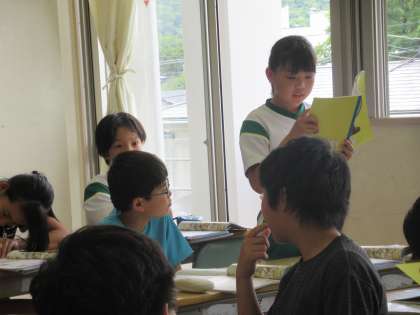 最後に、今日学習してわかったこと、感じ取ったこと、新たに芽生えた疑問などを個々に書き、発表しました。時間の都合で発表できる人数が限られたとき、発表したくてジャンケン勝負になりました。自分の考えをみんなに伝えたいという気持ちの強さが、伝わってきました。