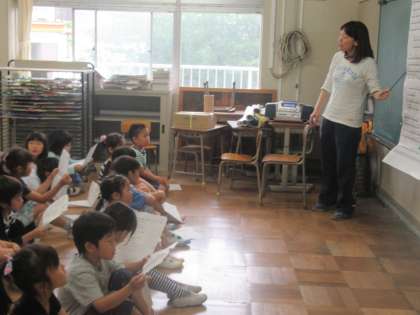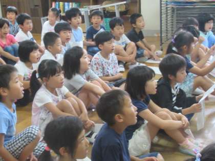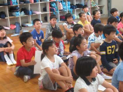 2年生は、英語の歌を歌って、英語に親しみました。繰り返し歌っているので、ずいぶん長い曲ものりのりで歌えます。