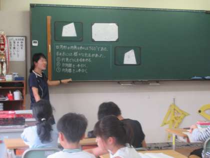 図形の内角の和について、学習しています。三角形と四角形の内角の和までは、みんなで学んでたどりついています。