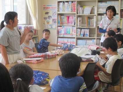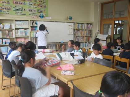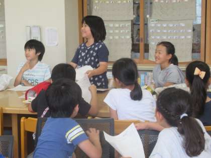 お気に入りの本をみんなに紹介する「マイブックショップ開店」の学習です。どうしたらみんなの関心を集める紹介になるか、考えていました。