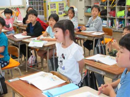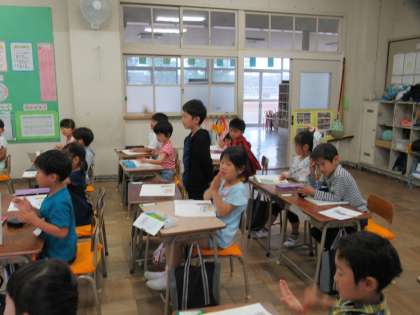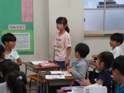 「きのうのこと」を話しています。話すことが、日記を書く活動につながっていきます。