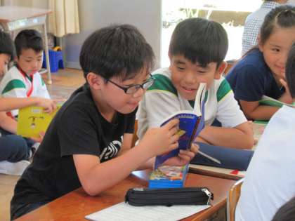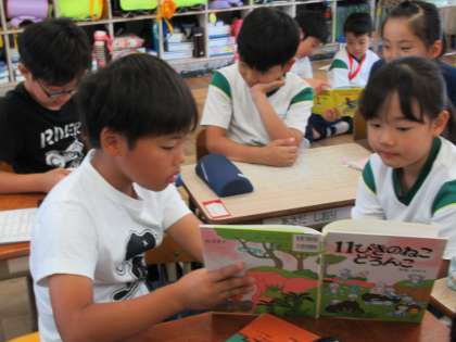 下級生は、上級生が読み聞かせてくれる本の世界を、じっくりと味わいました。読書の楽しさと人のぬくもりを感じる15分間でした。