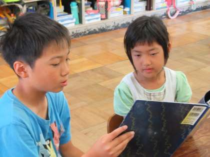 今朝は、なかよし活動の一つとして、ペア読書が行われました。