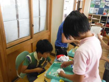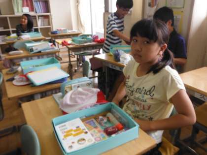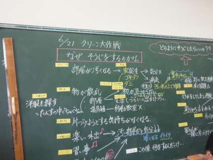 なぜ、掃除をするのかをクラスみんなで考えていました。そのあとは、自分のお道具箱を掃除していました。