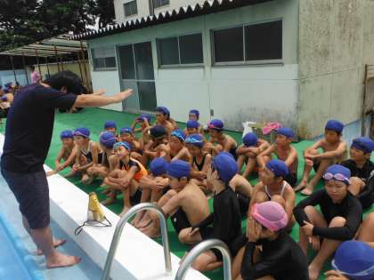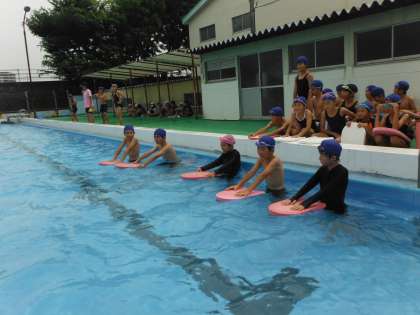 4年生のプールは、コース別に分かれて行います。自分の力にあったコースで泳力を伸ばします。
