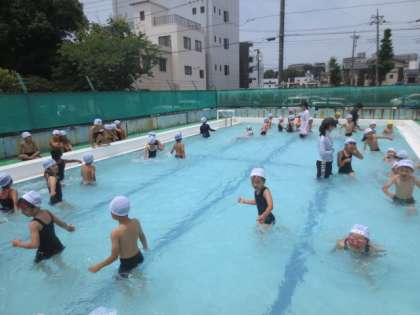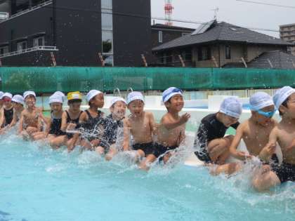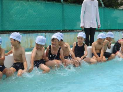梅雨の合間の晴れ間に、1組と2組でプールに入りました。待ちに待った小学校の初めてのプール、たくさんの笑顔がこぼれました。