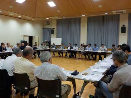 6月20日(水)に四小の多目的ホールで第四地区の防災教育連絡会議が行われました。第四小・中学校と近隣の幼稚園・保育園、東西の連合自治会長をはじめとした防災指導員、各自治会長等地域の方々、市役所の危機管理課の方々が一堂に会し、協議を行いました。