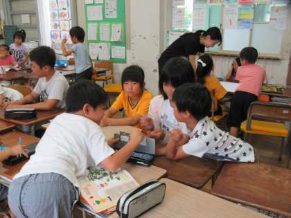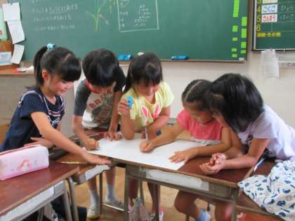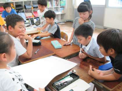 育てた野菜の種類ごとに、グループになって学習のまとめをしています。どんな気づきがあったのでしょうね。