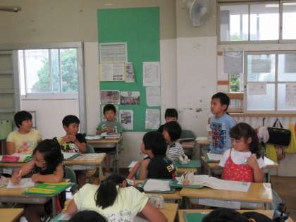 4年生の総合的な学習の時間では、「福祉」をテーマに学習していきます。今日は、先日実施した外部講師による学習会を振り返っていました。