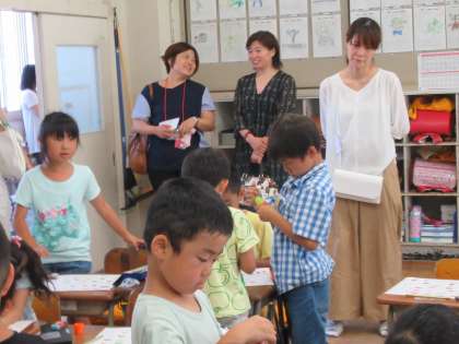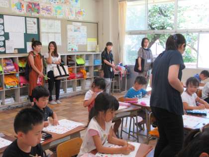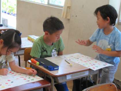 1年生の3時間目は、読解の授業です。スーパーマーケットに売っている物を仲間わけして、くくる言葉をつける学習でした。