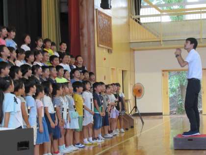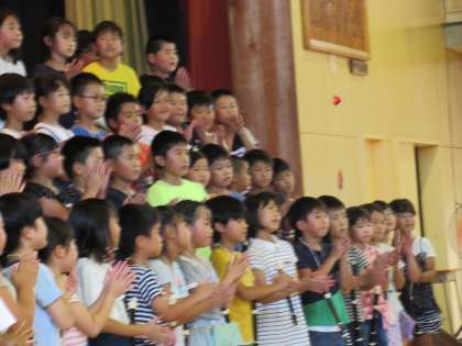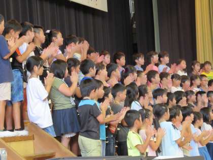 3年生は、ボディーパーカッションで、元気いっぱいに演奏を開始しました。