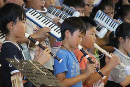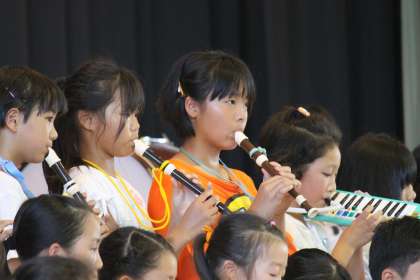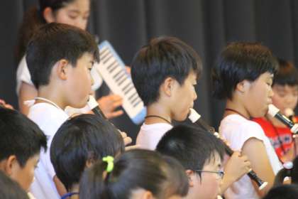 「キリマンジャロ」では、いろいろな楽器を使いながら世界観を表現していました。少しずつ増えていく音色に、他の学年はびっくりしていました。