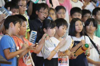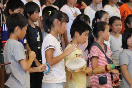 「キリマンジャロ」では、いろいろな楽器を使いながら世界観を表現していました。少しずつ増えていく音色に、他の学年はびっくりしていました。「この音は一体、何の楽器だろう?」と、思わず聞き入ってしまいますね。