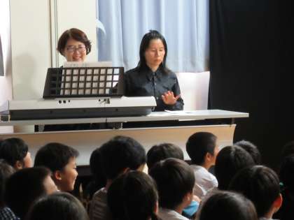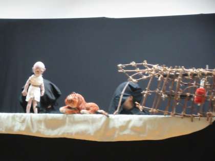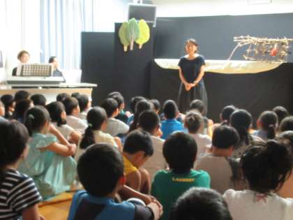 ロシアの民話やイソップの童話を、人形劇で楽しませていただきました。効果音も、生演奏です。