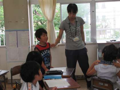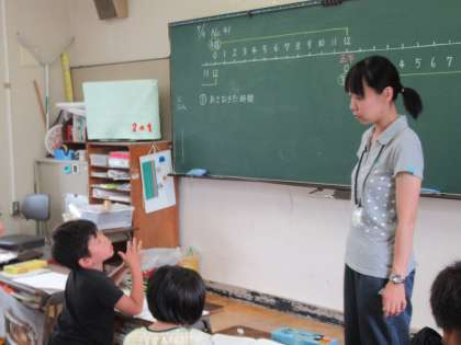 時間と時刻の学習です。その瞬間を示す時刻と、時刻と時刻の間の時間を、区別して話しています。