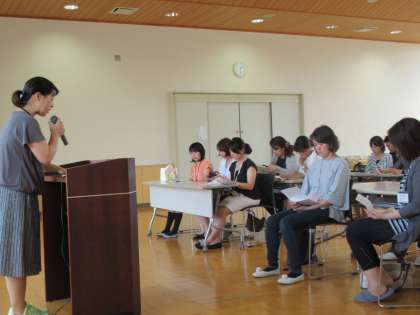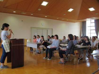 1年学年主任から、給食指導の方針や内容について説明しました。栄養士からは、学校給食の目的や方法・内容、四小の給食の具体について説明をしました。