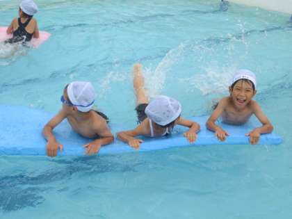 学校のプールに慣れてきて、いろいろな動きがのびのびとできるようになってきました。