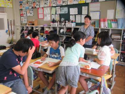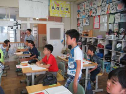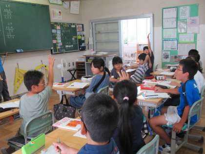 全員で考え合う時間でしたが、ここぞというところで先生が止めて、隣近所と交流する時間をとっていました。
